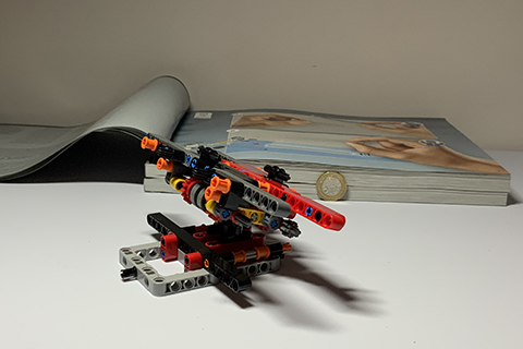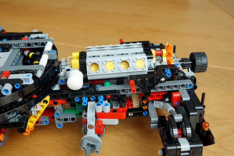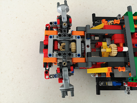 Note the ruler to give a better feeling for the scale of the model. The red pointer will be used to select which way the crane turns. There is a similar selector on the other side that will be used to raise or lower the support legs at each corner.